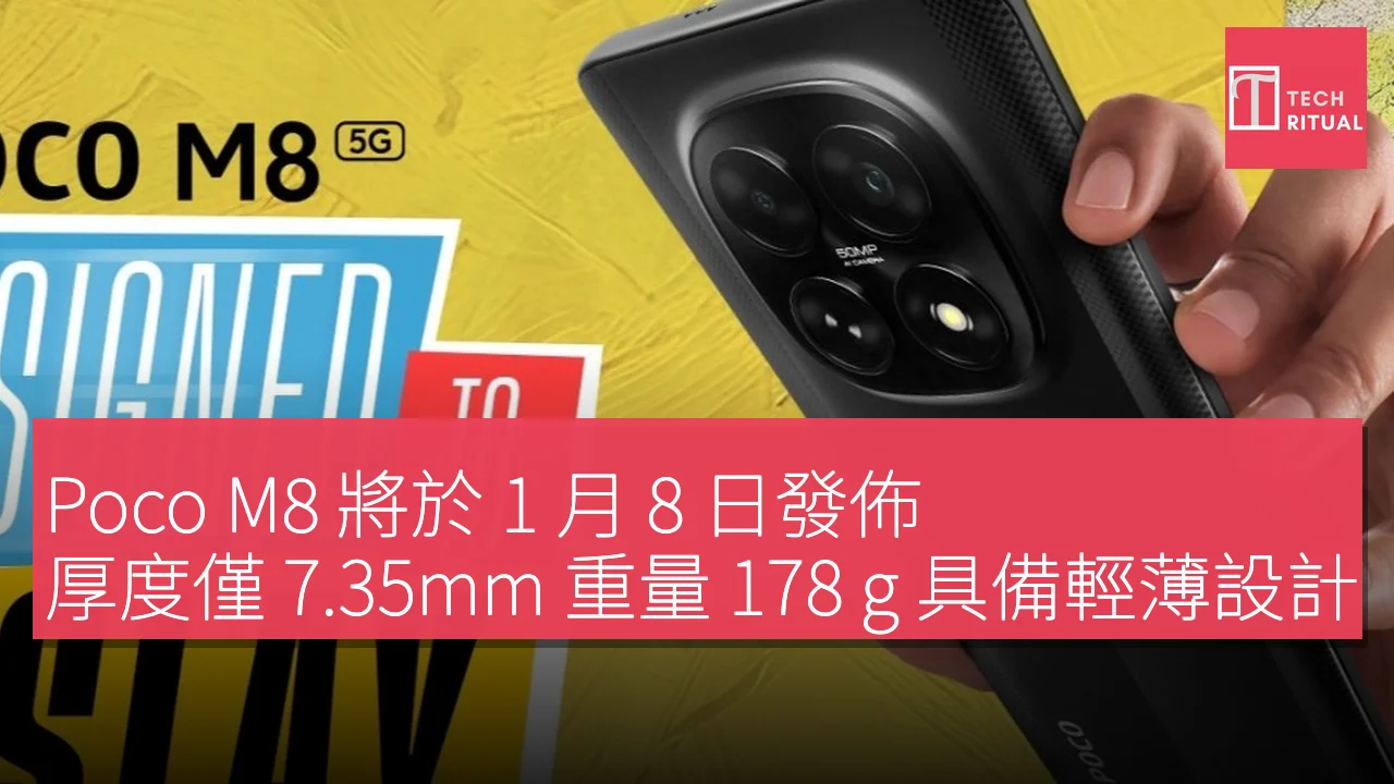 Poco 宣佈將於當地時間 1 月 8 日中午 12 時在印度發佈 Poco M8。該公司表示,Poco M8 是為「尋求卓越性能與獨特美學的新一代用戶而設」,並將為印度中階智能手機市場帶來全新的設計理念。