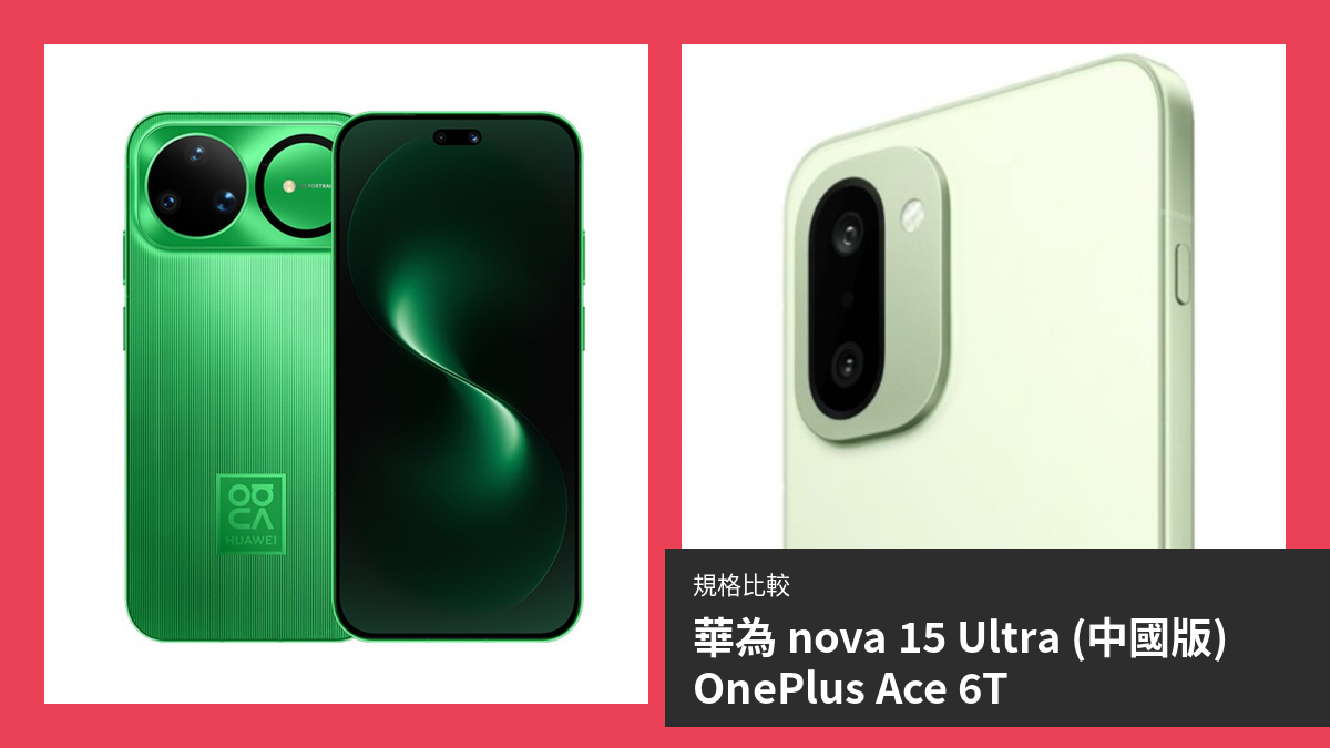 | 項目 | 華為 nova 15 Ultra (中國版) | OnePlus Ace 6T |