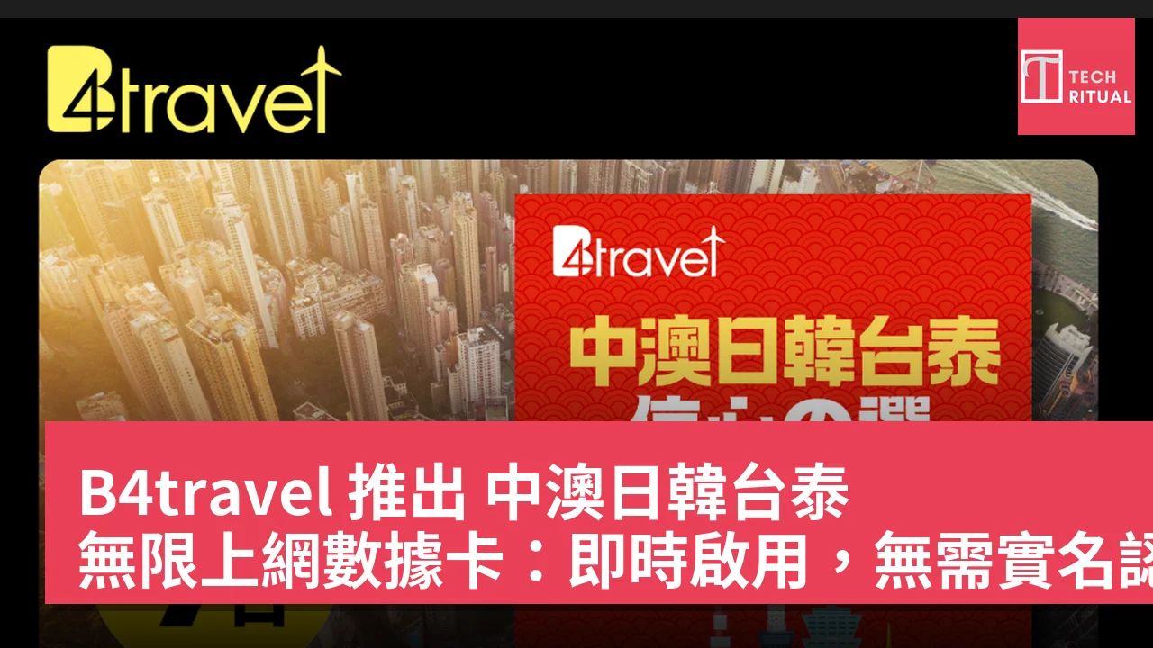 B4travel 中澳日韓台泰 無限上網數據卡 以無限制的數據使用為賣點,適合經常需要上網嘅旅遊者。無論係商務出差定係休閒旅行,呢款產品都能夠滿足用家對高速上網嘅需求。現時售價為 HK$168,並提供博客專屬優惠碼 KERBB,享受95折優惠,令使用成本更具吸引力。使用方法簡單,只需在結算時輸入優惠碼即可享受折扣。