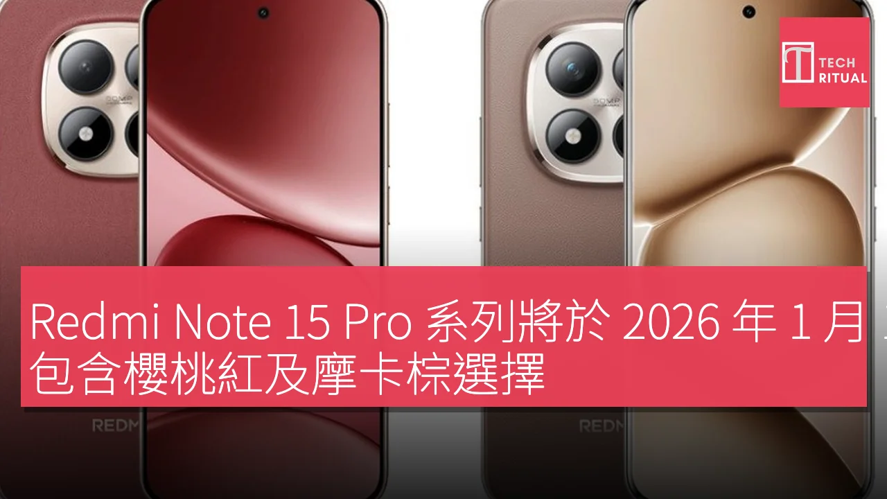 Redmi Note 15 Pro 將推出全新的櫻桃紅顏色,而 Redmi Note 15 Pro+ 則將有摩卡棕色可供選擇。這些新顏色選項採用了類似皮革的質感,並計劃於 1 月 1 日正式開售。
