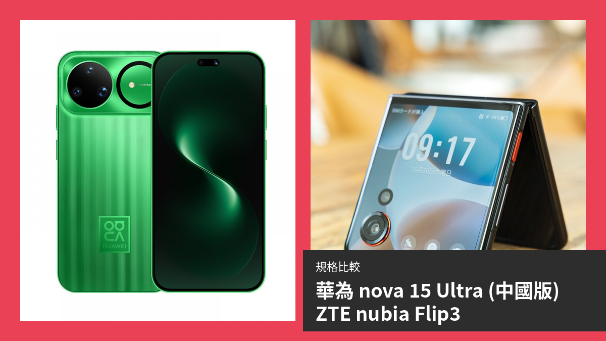 | 項目 | 華為 nova 15 Ultra (中國版) | ZTE nubia Flip3 |