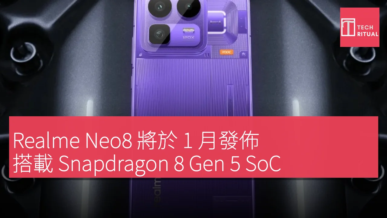 Realme Neo8 將於 1 月發佈,搭載 Snapdragon 8 Gen 5 SoC,基準得分達 385 萬分