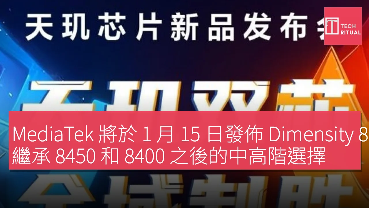 MediaTek 將於 1 月 15 日發佈 Dimensity 8500 晶片組,繼承 8450 和 8400 之後的中高階選擇