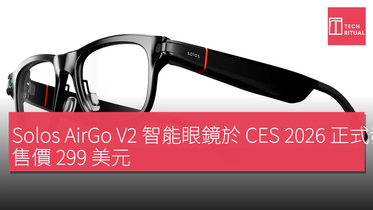 在2026年的消費電子展(CES)上,Solos 宣布其最新的智能眼鏡 AirGo V2 正式上市,售價為 $299 / 約 HK$ 2,334。該產品的發佈標誌著該公司在智能眼鏡領域的進一步發展,並提供多款框架顏色供用戶選擇。