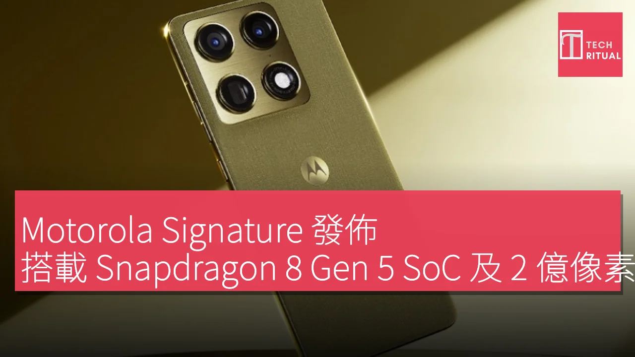 Motorola Signature 發佈,搭載 Snapdragon 8 Gen 5 SoC 及 2 億像素三鏡頭系統