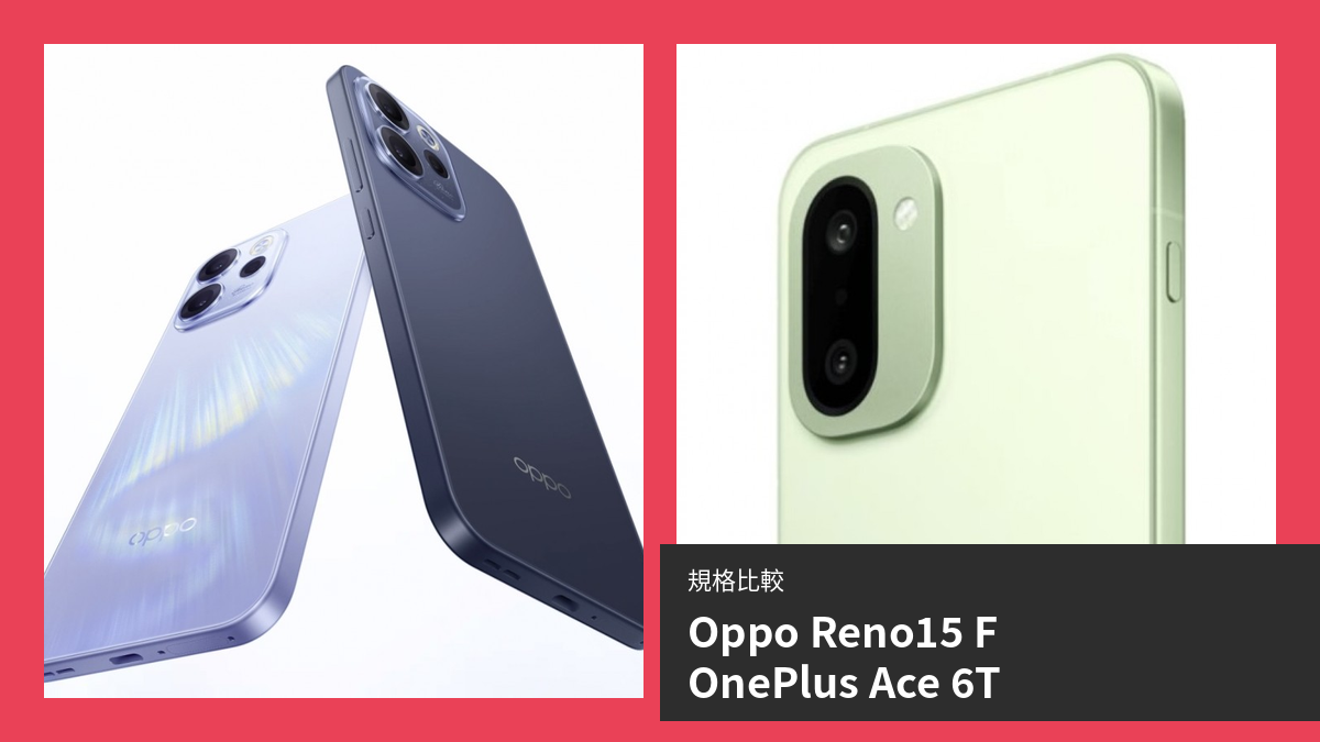 【手機比較】Oppo Reno15 F 與 OnePlus Ace 6T:規格表、效能、攝影功能