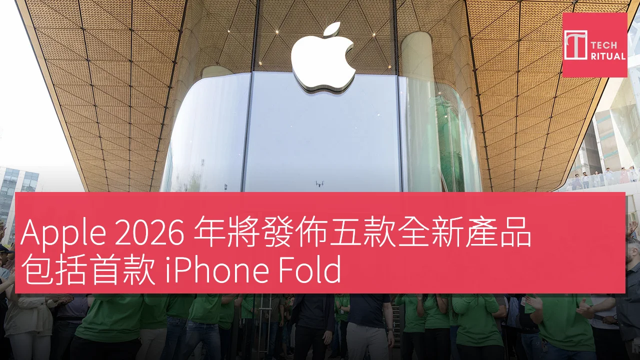 Apple 2026 年將發佈五款全新產品,包括首款 iPhone Fold,內外屏幕尺寸分別為 5.3 吋及 7.7 吋