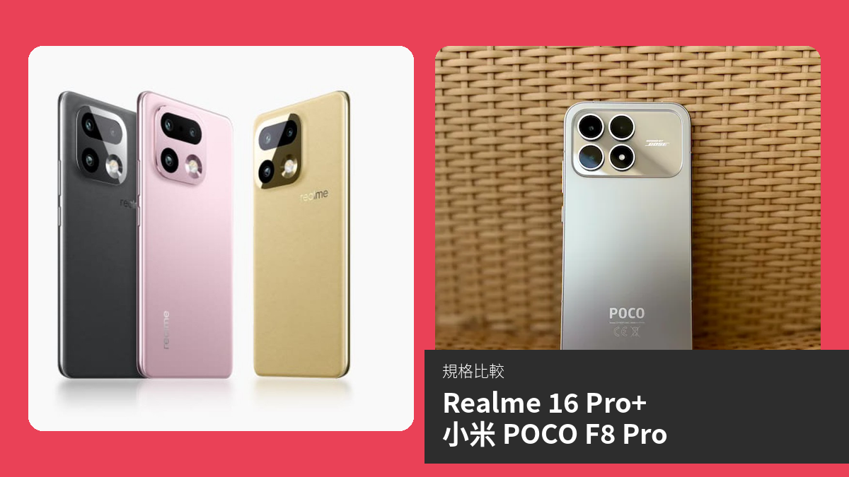 | 項目 | Realme 16 Pro+ | 小米 POCO F8 Pro |