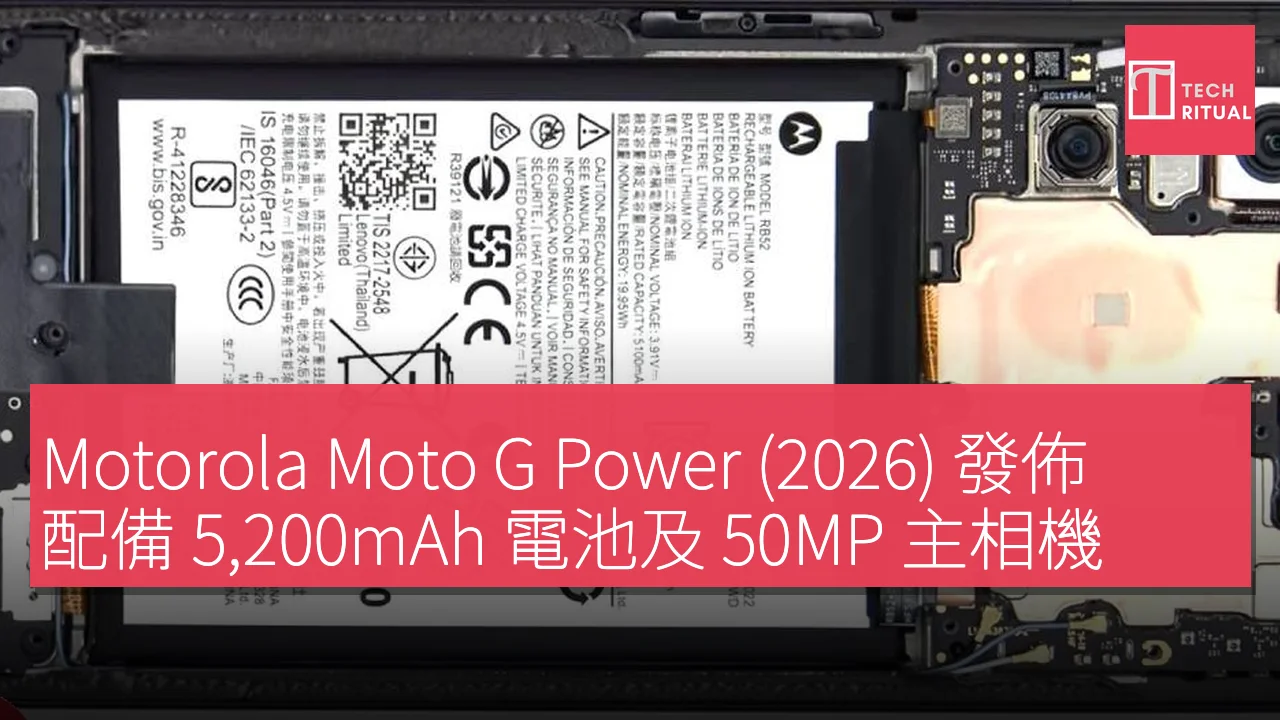 Motorola Moto G Power (2026) 發佈,配備 5,200mAh 電池及 50MP 主相機,維修評分中等