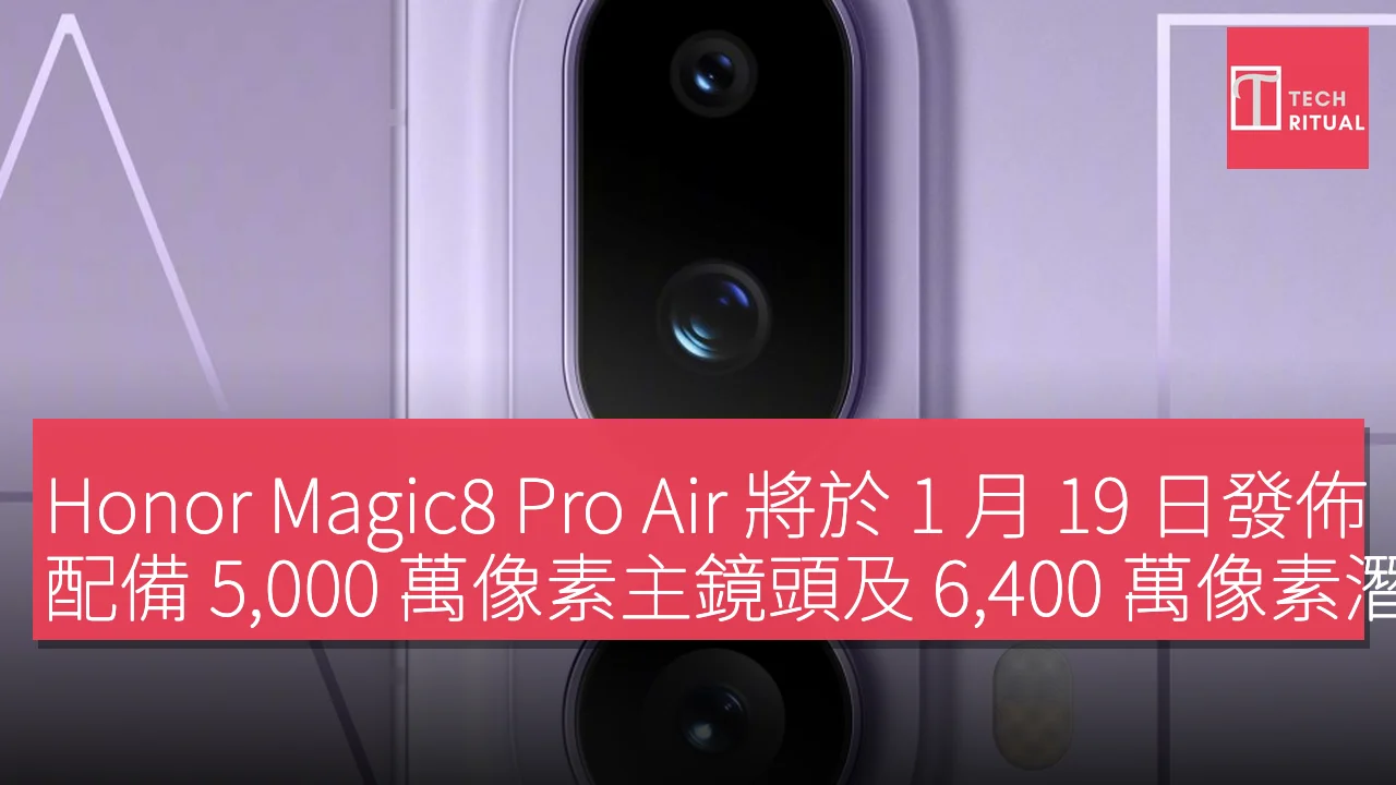 Honor Magic8 Pro Air 將於 1 月 19 日發佈,配備 5,000 萬像素主鏡頭及 6,400 萬像素潛望式鏡頭
