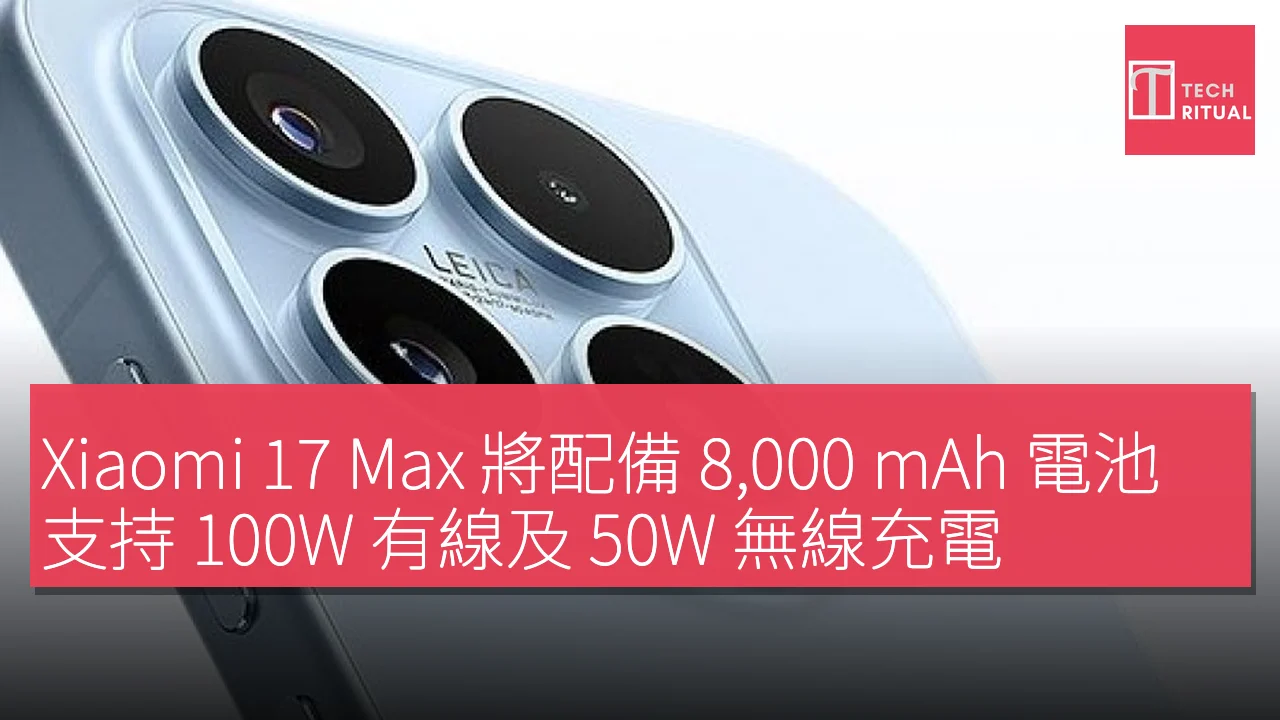 根據中國的最新消息,小米的旗艦 17 系列即將迎來一位新成員——小米 17 Max。這款新手機將搭載 8,000 mAh 的超大電池,成為該系列中電池容量最大的機型。電池將支持 100W 的有線充電和 50W 的無線充電。