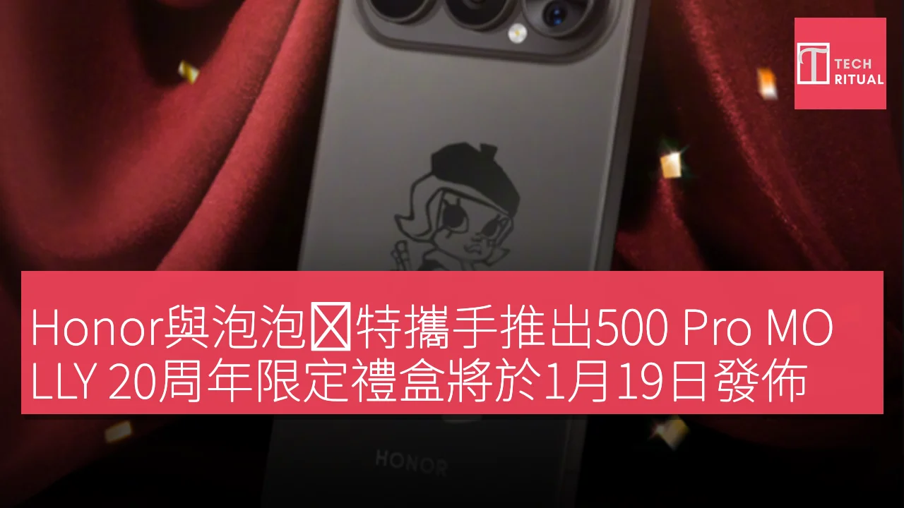 Honor正式官宣與泡泡瑪特旗下經典 IP MOLLY 達成聯名合作,將推出「榮耀 500 Pro MOLLY 20 週年限定禮盒」,並定於 1 月 19 日晚上 7 點 30 分正式發佈。