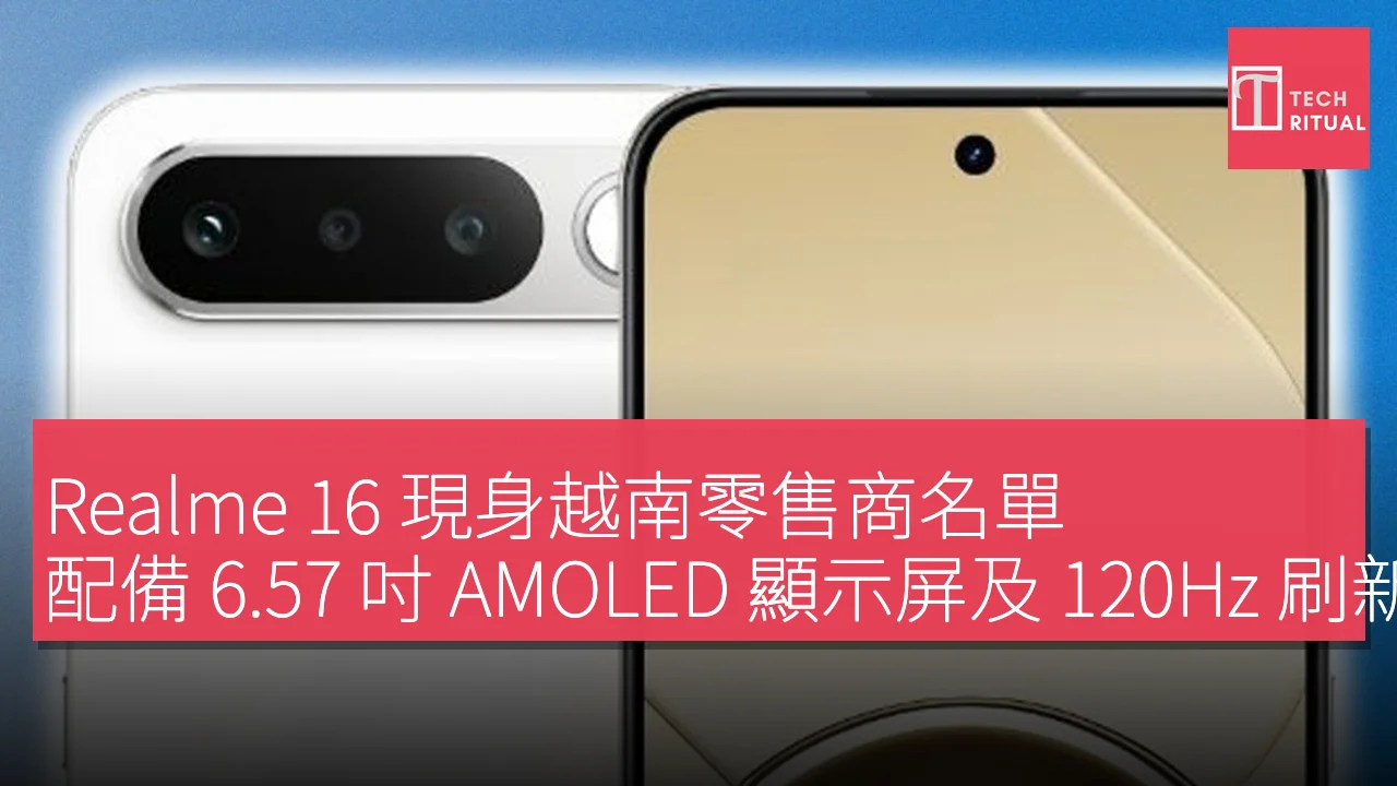 Realme 16 現身越南零售商名單,配備 6.57 吋 AMOLED 顯示屏及 120Hz 刷新率