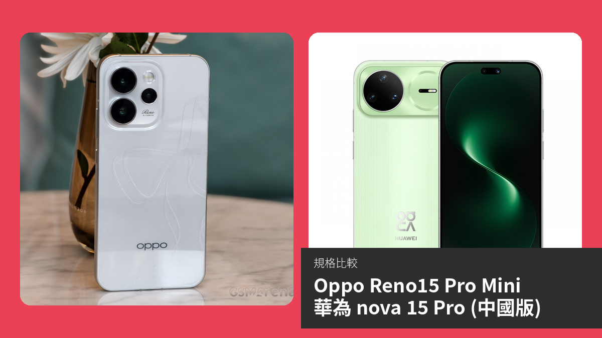 | 項目 | Oppo Reno15 Pro Mini | 華為 nova 15 Pro (中國版) |