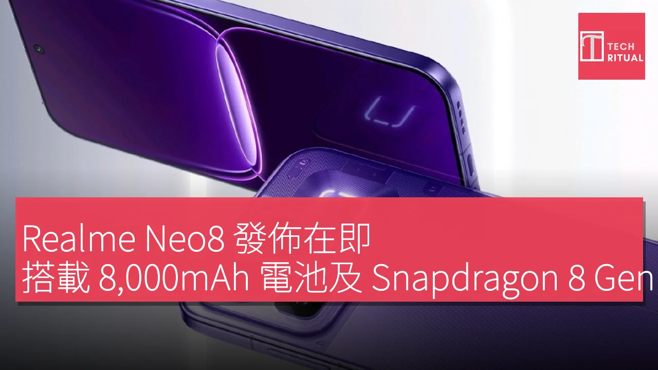 Realme Neo8 發佈在即,搭載 8,000mAh 電池及 Snapdragon 8 Gen 5 SoC