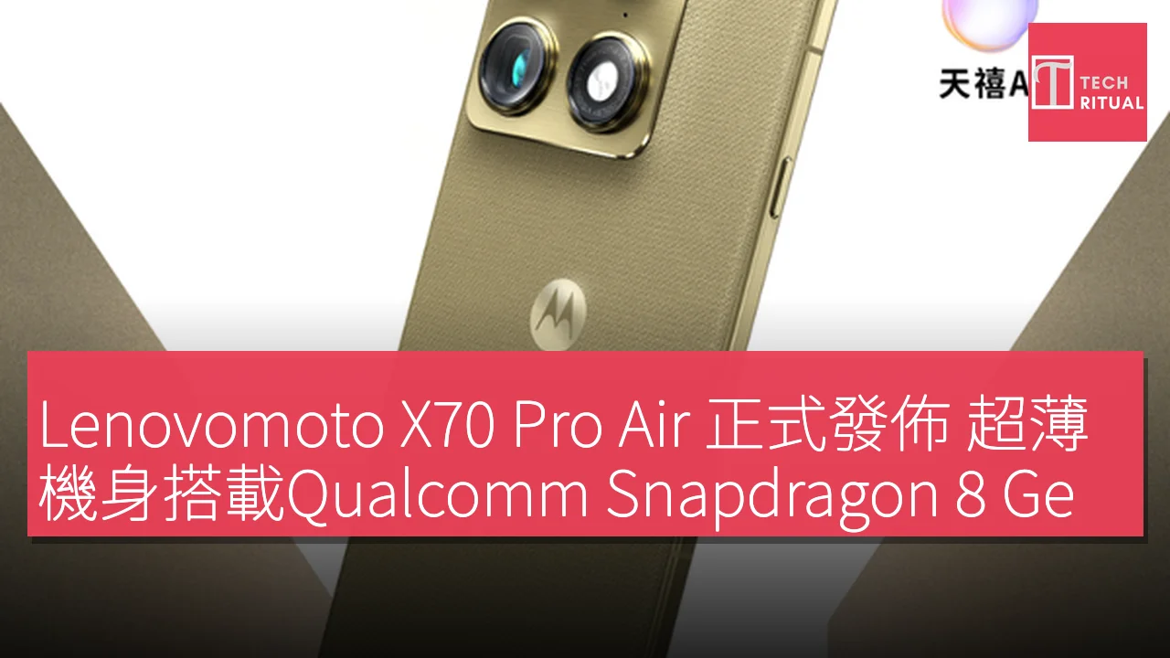 99mm,重量為 186g,依然保持超薄設計。 其攝影配置上,Lenovomoto X70 Pro Air 採用後置三攝,三顆攝像頭均為 5,000 萬像素,並支持三倍光學變焦。此外,前置攝像頭同樣為 5,000 萬像素。電池容量為 5,200mAh,並配備金屬中框,支持 UWB 技術。 價格方面,Lenovomoto X70 Pro Air 12GB + 256GB 版本售價 3,999 元人民幣,約 HK$4,359;16GB + 512GB 版本售價 4,499 元人民幣,約 HK$4,899;而 16GB + 1TB 版本則售價 4,999 元人民幣,約 HK$5,439。