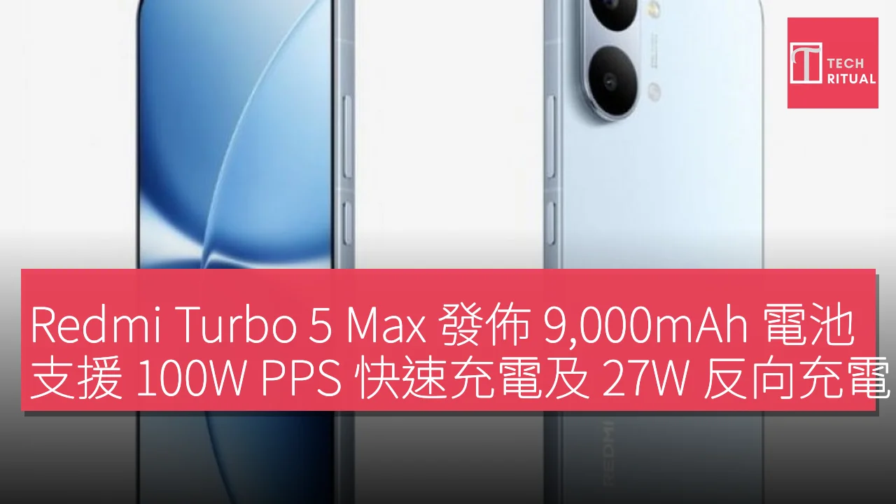 Redmi Turbo 5 Max 發佈 9,000mAh 電池,支援 100W PPS 快速充電及 27W 反向充電