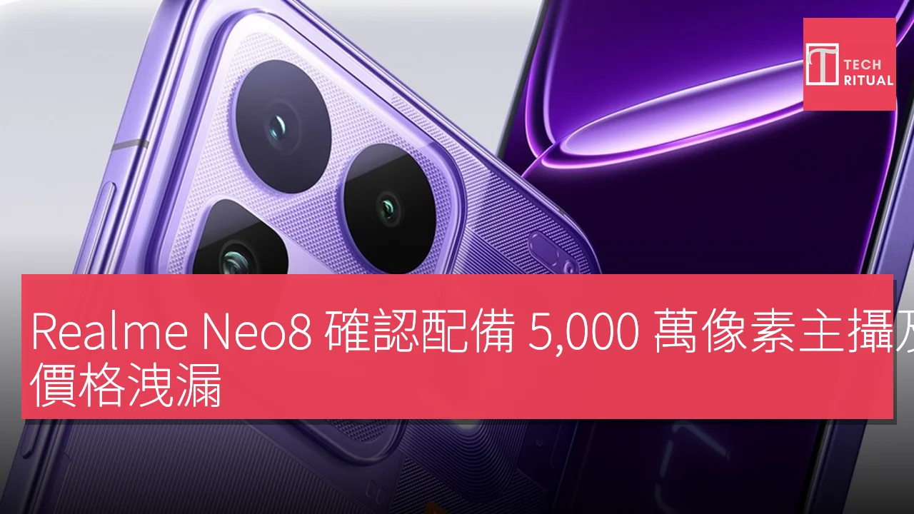 Realme Neo8 確認配備 5,000 萬像素主攝及 5,000 萬像素潛望式鏡頭,價格洩漏