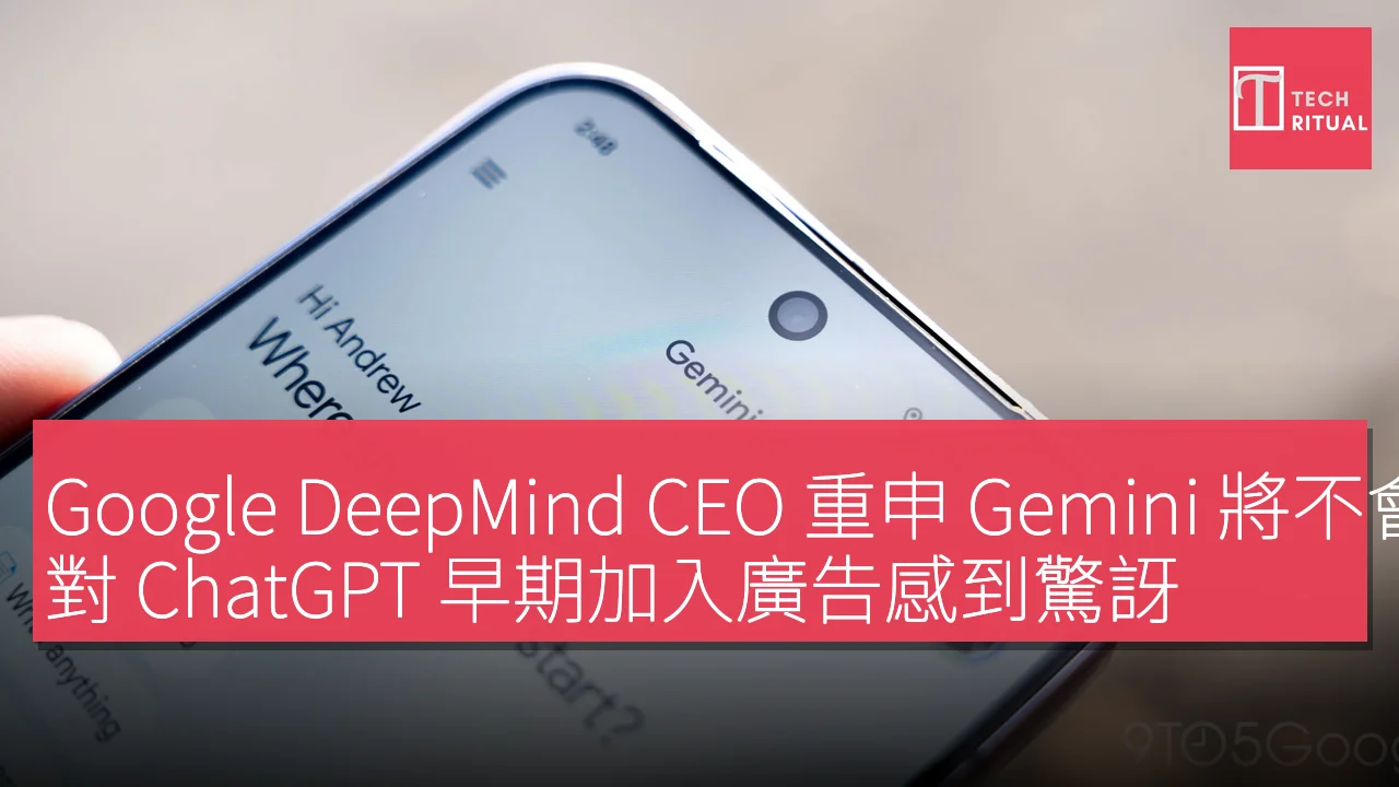 Google DeepMind CEO 重申 Gemini 將不會加入廣告,對 ChatGPT 早期加入廣告感到驚訝