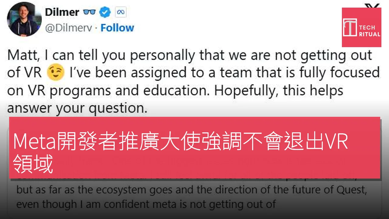 針對這一問題,Meta 的開發者推廣大使迪爾默·瓦萊西略斯在社交媒體 X 上發表了聲明。他強調:「我們不會退出 VR。」他對一位指出 Meta 溝通不足的 VR 內容創作者表示,自己已經加入一個專注於 VR 項目與教育的團隊,希望能解答對方的疑慮。