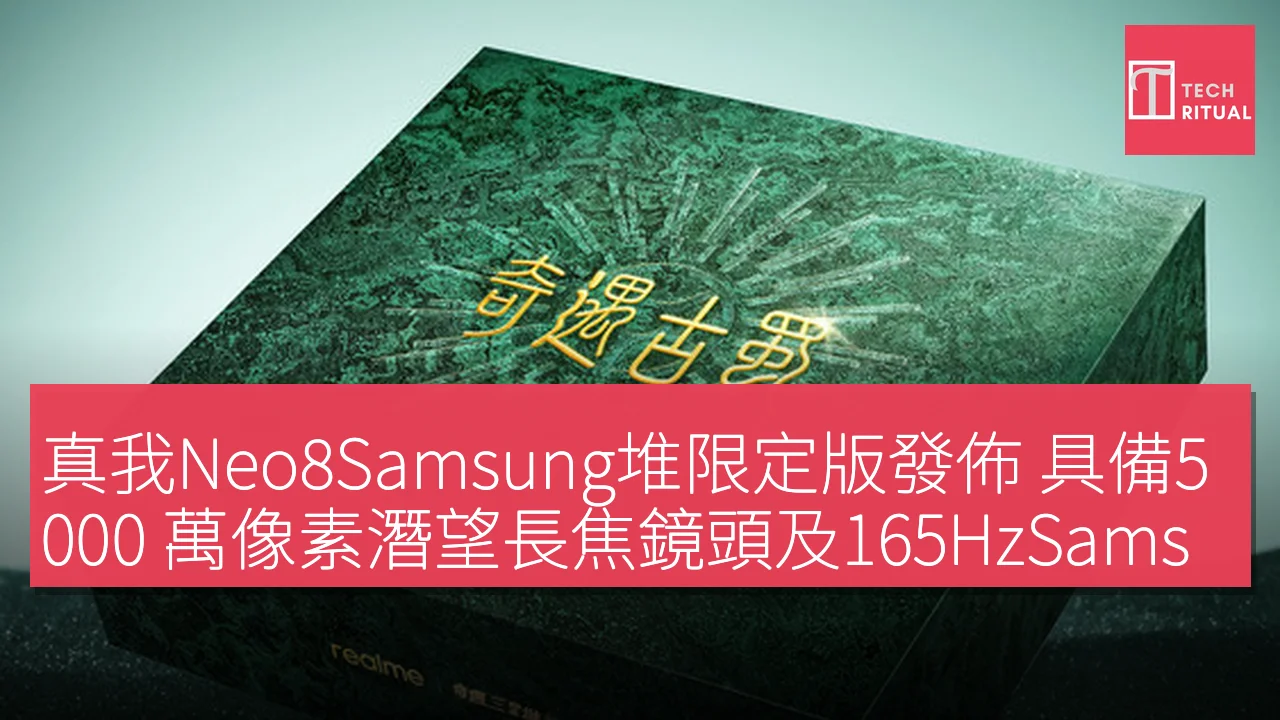 真我手機宣布與奇遇Samsung堆聯合打造真我 Neo8 Samsung堆限定禮盒。禮盒表面醒目地印有「真我 Neo8 Samsung堆限定版」字樣。根據官方信息,真我 Neo8 延續了 Neo 系列一貫的設計語言,機身背部配備方形相機 Deco,相機模組右側是標誌性的「覺醒光環」。 真我 Neo8 還將全球首發 165Hz Samsung蒼穹屏,採用 M14 發光材料,可讓屏幕發光能效提升 26%,局部峰值亮度高達 6,500 尼特,並且支持 3,800 尼特陽光顯示。即使在強光環境下,屏幕內容依然清晰可見。 影像方面,真我 Neo8 搭載的 5,000 萬像素潛望長焦鏡頭支持 3.