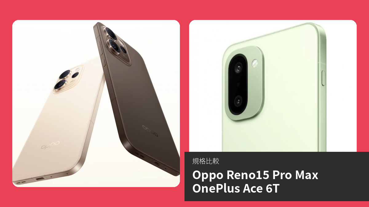 | 項目 | Oppo Reno15 Pro Max | OnePlus Ace 6T |