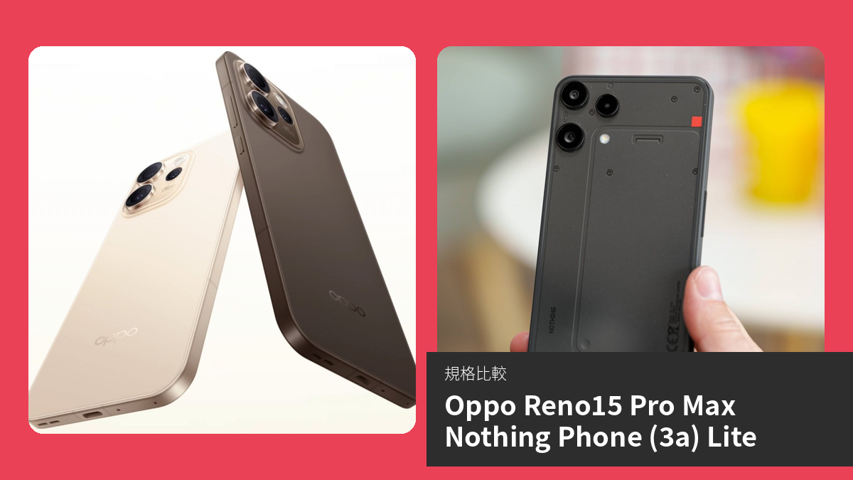 | 項目 | Oppo Reno15 Pro Max | Nothing Phone (3a) Lite |