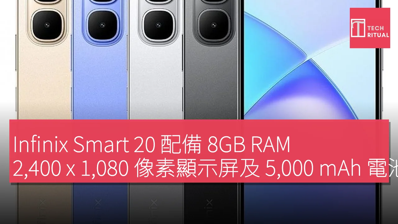 Infinix Smart 20 配備 8GB RAM、2,400 x 1,080 像素顯示屏及 5,000 mAh 電池容量