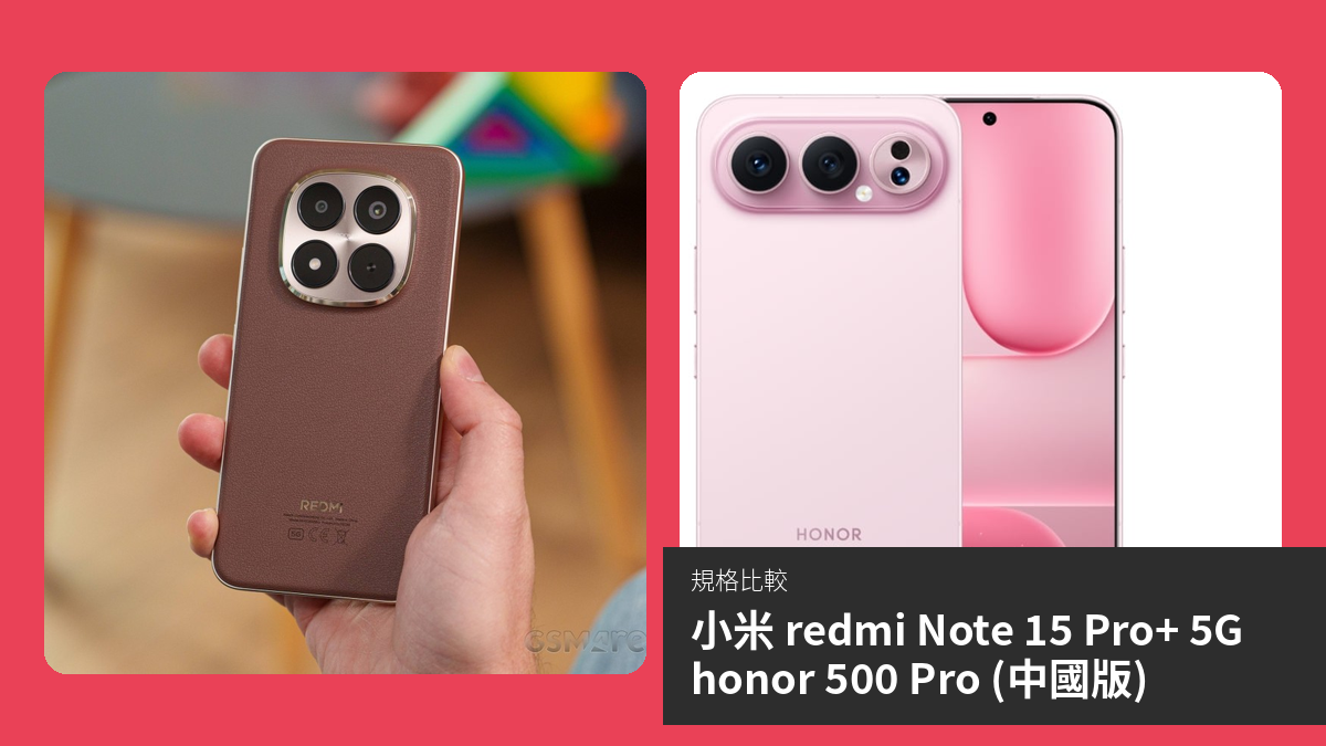 | 項目 | 小米 redmi Note 15 Pro+ 5G | honor 500 Pro (中國版) |
