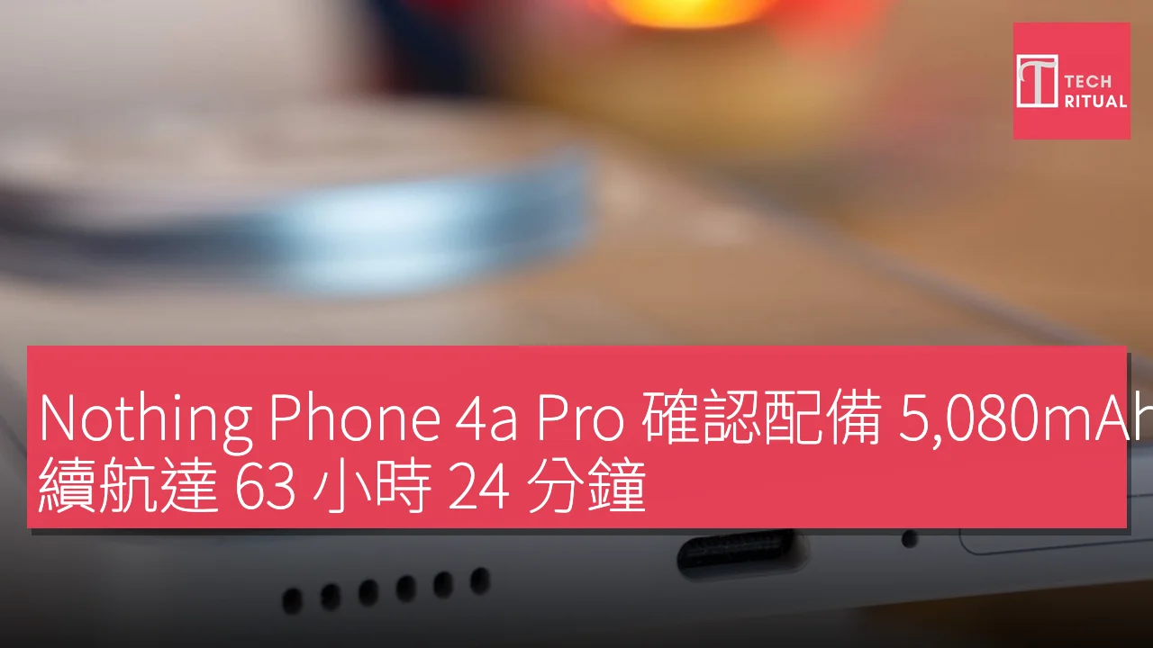 Nothing Phone 4a Pro 確認配備 5,080mAh 電池及 50W 快充,續航達 63 小時 24 分鐘