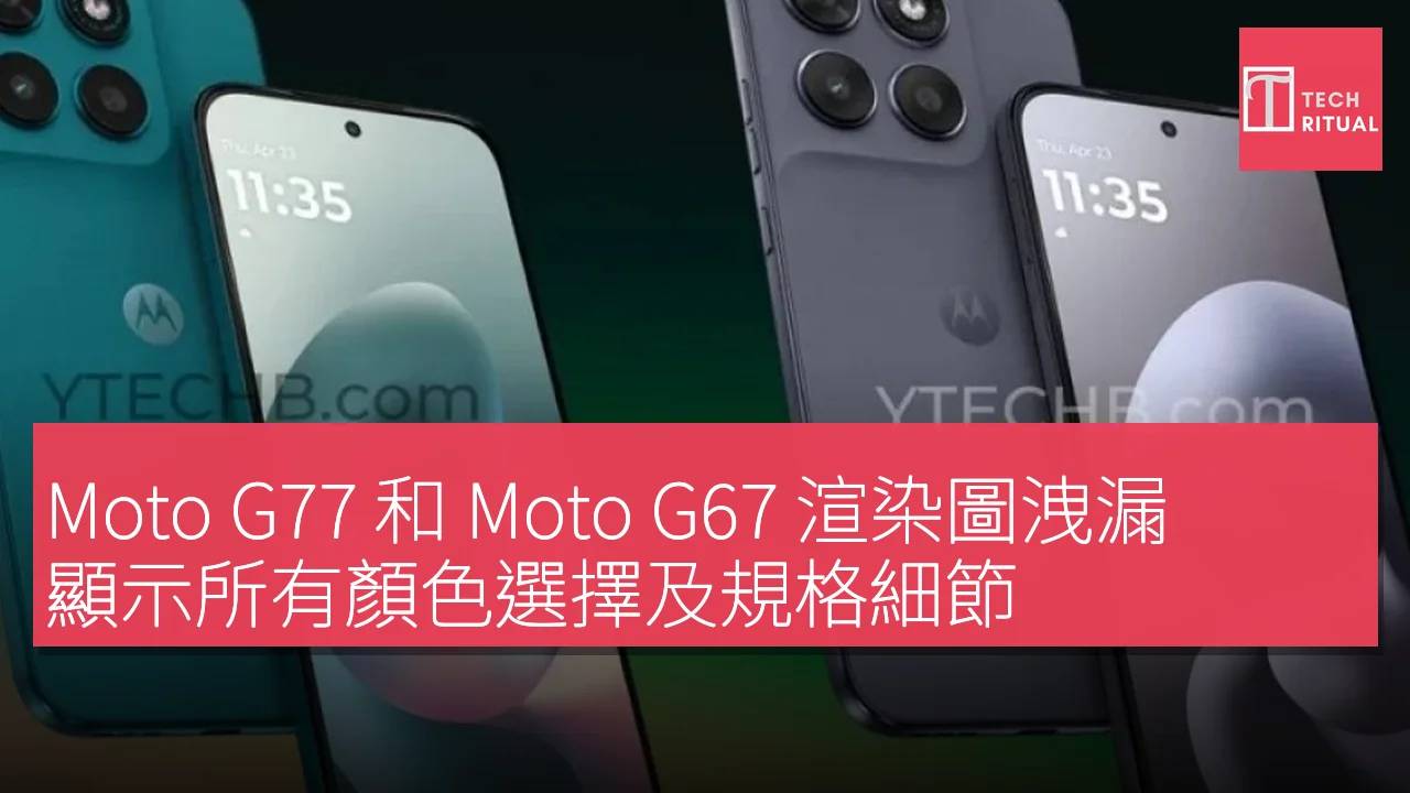 另一方面,G67 配色為 Pantone Arctic Seal 和 Pantone Light Parrot Green,配備 Dimensity 6300 處理器,顯示器似乎與 G77 相同。G67 擁有 5000 萬像素主攝像頭、800 萬像素超廣角鏡頭、3200 萬像素前置攝像頭,配備 4GB RAM 和 128GB 可擴展存儲,並且電池及充電規格與 G77 相同。
