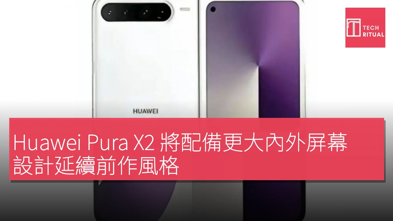 在外部設計方面,原本的Pura X將覆蓋顯示屏和相機模組置於同一側,而Pura X2則有望重新考慮這一布局,將更大的覆蓋顯示屏放置在一側,並將相機模組移至設備的另一側。