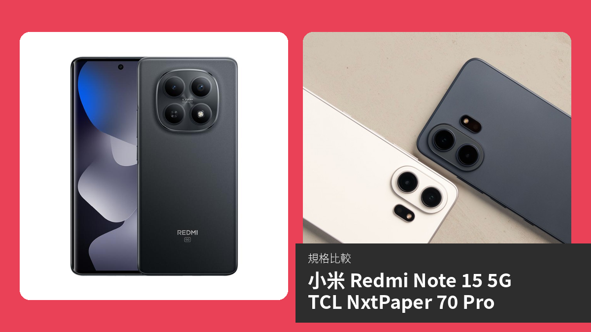 | 項目 | 小米 Redmi Note 15 5G | TCL NxtPaper 70 Pro |