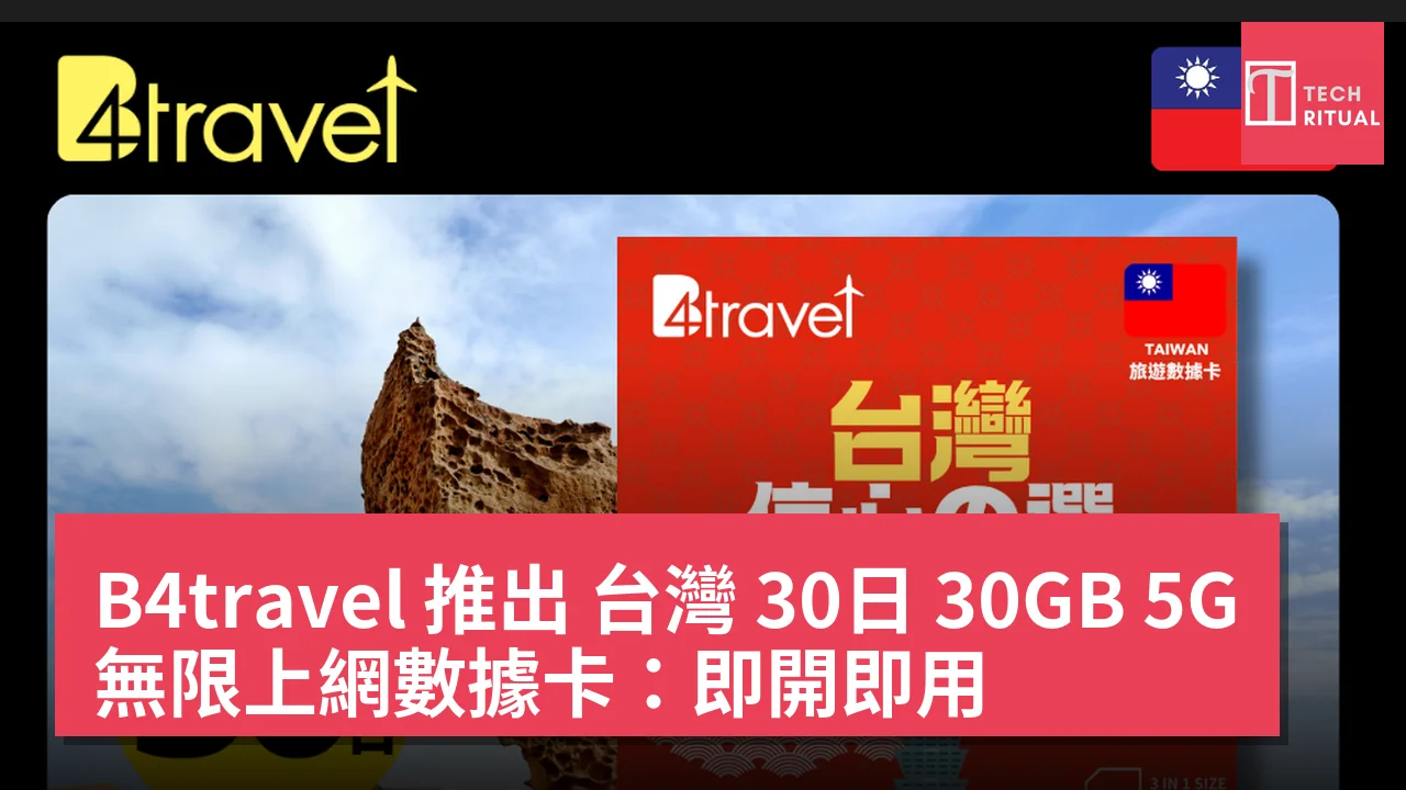 B4travel 推出 台灣 30日 30GB 5G 無限上網數據卡:即開即用