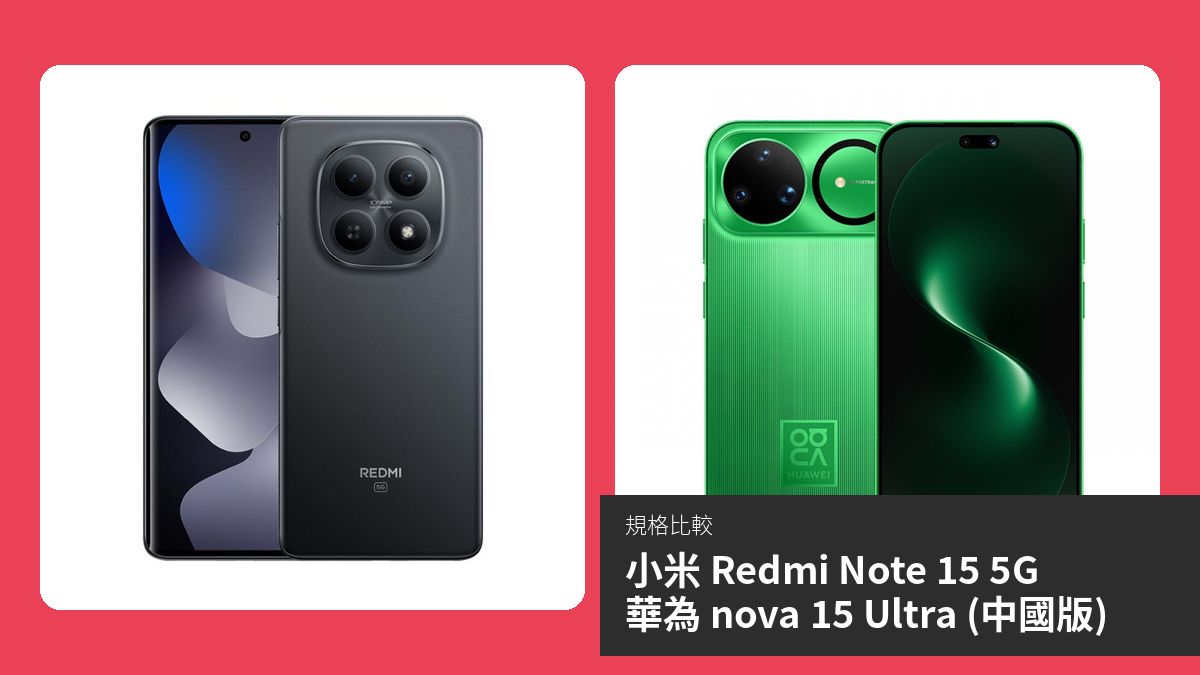 | 項目 | 小米 Redmi Note 15 5G | 華為 nova 15 Ultra (中國版) |