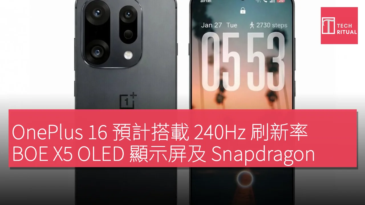 據悉,OnePlus 16 將配備一塊平面 BOE X5 OLED 顯示屏,解析度為 1,220p,並具備驚人的 240Hz 刷新率。內部配置方面,可能會搭載高通即將推出的 Snapdragon Elite Gen 6 處理器,據傳該處理器的時脈可達 6GHz,並搭配 LPDDR6 RAM 及 UFS 4.1 儲存。