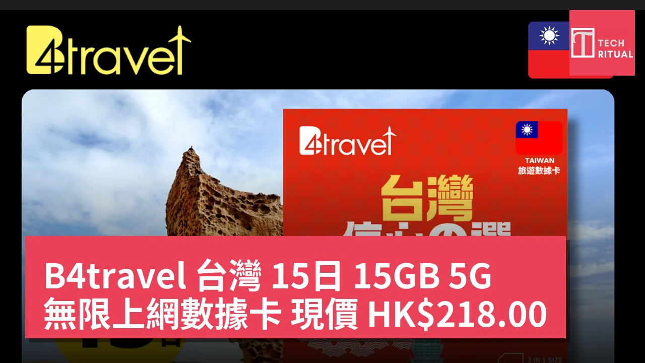 B4travel 台灣 15日 15GB 5G 無限上網數據卡 現價 HK$218.00