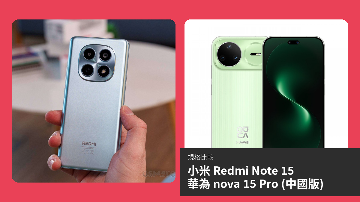 | 項目 | 小米 Redmi Note 15 | 華為 nova 15 Pro (中國版) |