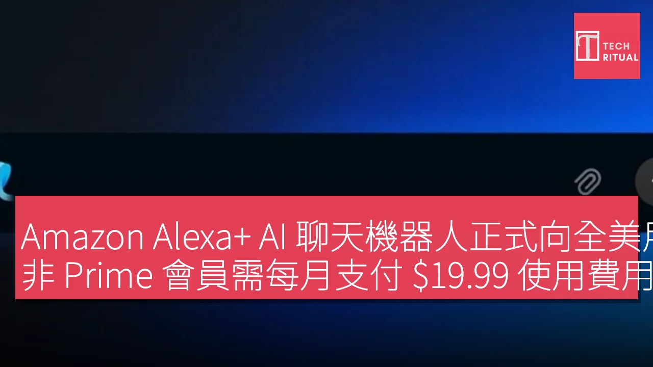 Amazon 的 Alexa+ AI 聊天機器人至今僅對參加早期訪問的用戶開放,但從今天起,所有美國用戶均可使用 Alexa+。不過,訂閱 Amazon Prime 的用戶可以享受免費且無限制的使用權限。如果並非 Prime 會員,則需支付每月 $19.99 / 約 HK$ 155 的費用,或可以使用 Alexa+ 聊天功能,這是一個基於文本的聊天介面,能快速回答問題、計劃、研究及探索新主題。