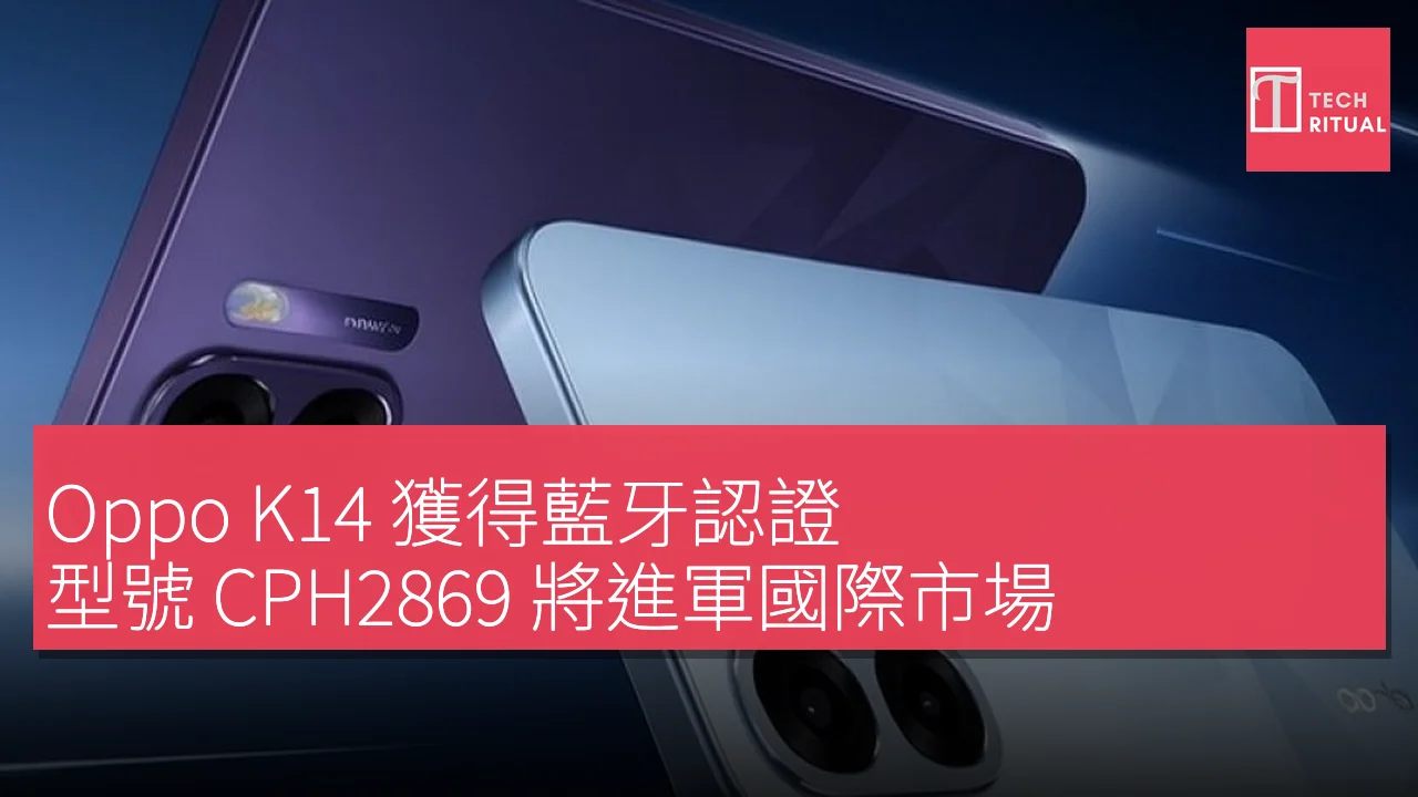 Oppo 將於下周在印度發佈 K14x,同時也在為中國市場開發 K14 Turbo 和 K14 Turbo Pro。不過,還有一款「普通版」的 Oppo K14。這一消息是通過其在藍牙 SIG 的認證中透露出來的。該型號的編號為 CPH2869,而 K14x(同樣由該機構認證)則為 CPH2871。