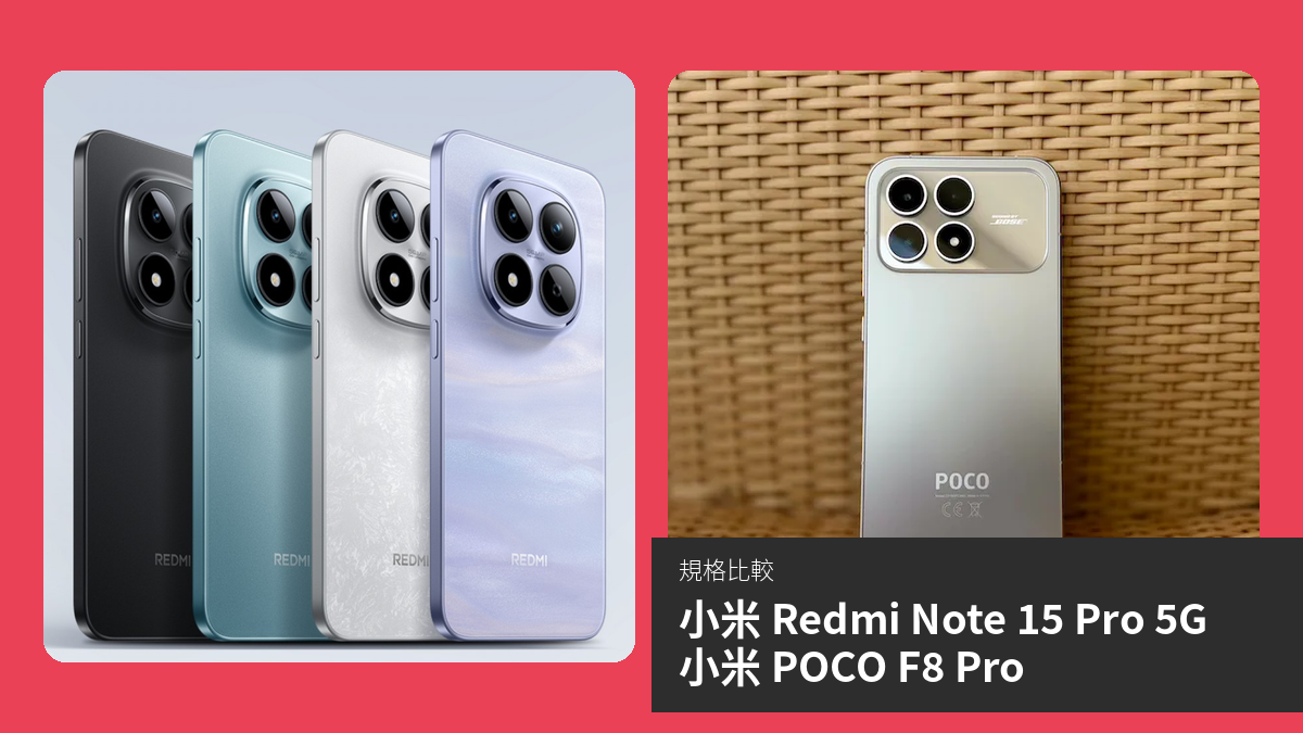 【手機比較】小米 Redmi Note 15 Pro 5G 與 小米 POCO F8 Pro:規格表、效能、攝影功能