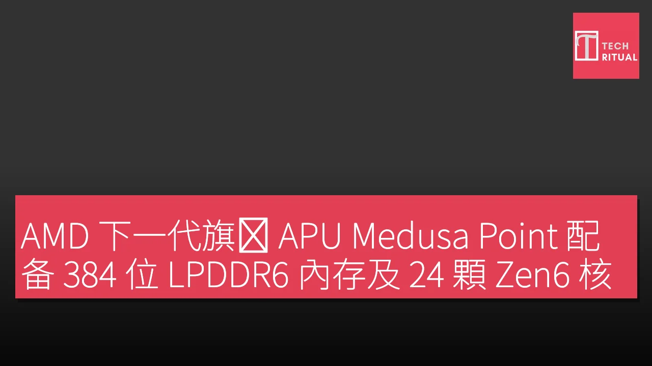 AMD 下一代旗舰 APU Medusa Point 配备 384 位 LPDDR6 內存及 24 顆 Zen6 核心預計於 2027 年問世