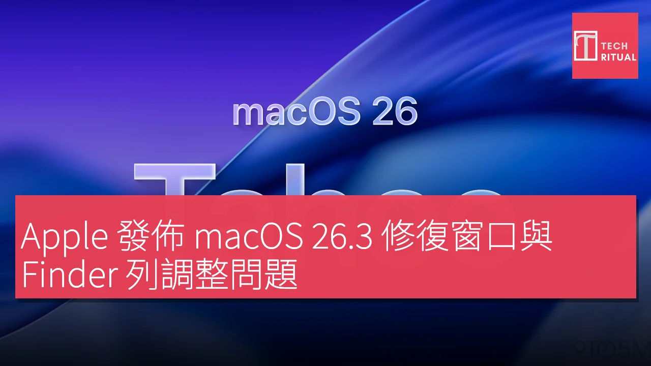 Apple 發佈 macOS 26.3 修復窗口與 Finder 列調整問題