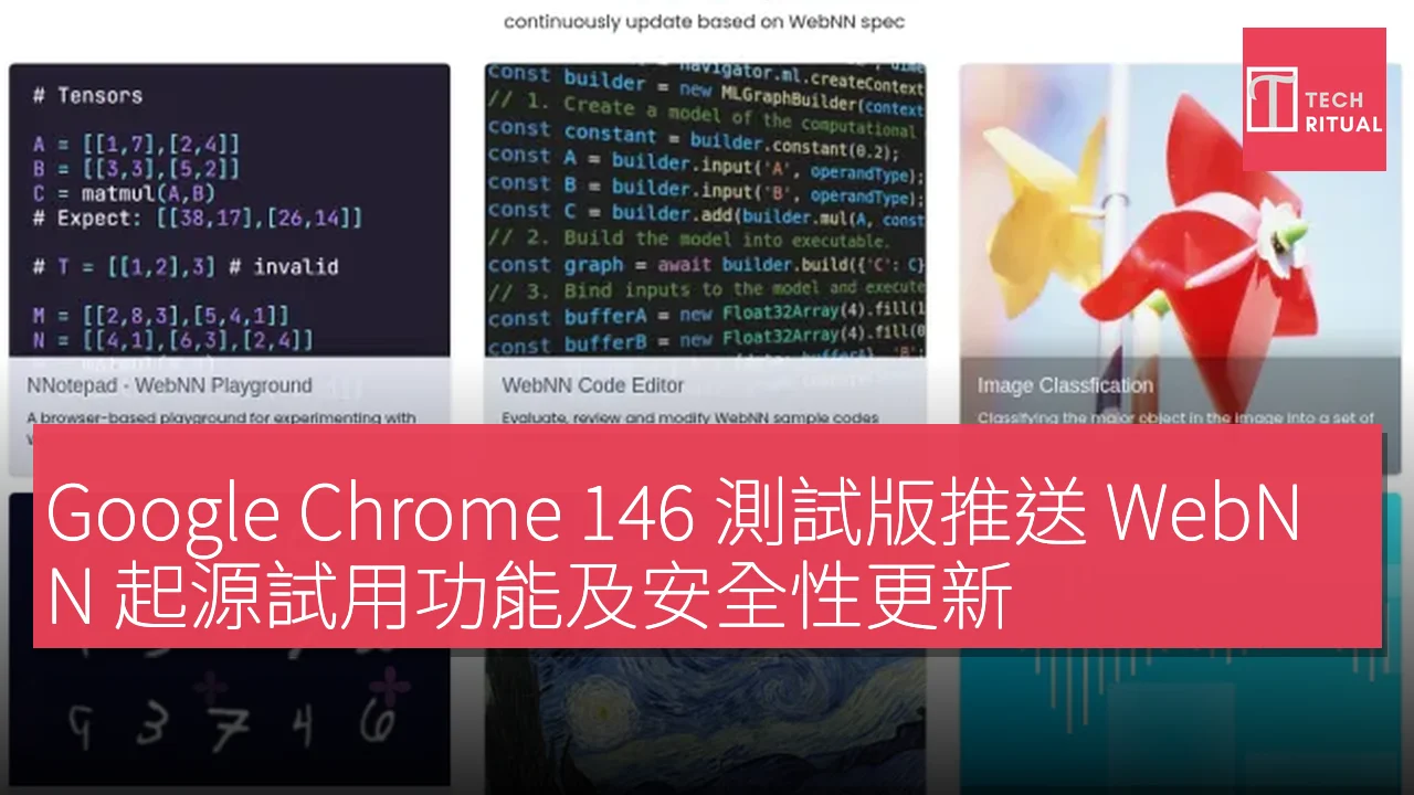 Google 將 Chrome 146 推送至桌面平台測試通道,面向更廣泛用戶開啟下一階段瀏覽器功能與開發者特性測試。此次更新最受關注的亮點,是將 WebNN(Web Neural Network API)提升為起源試用(Origin Trial),為在瀏覽器內直接調用本地神經網絡推理加速硬件鋪平道路。