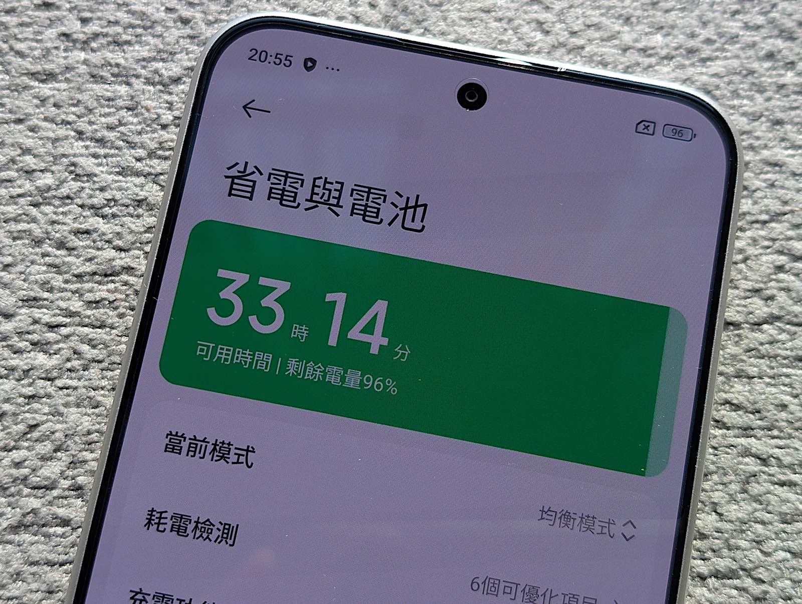 Redmi Note 15 Pro 5G 配備了一顆 6,580mAh 的大電池,在同級機型中屬於偏大容量。這樣的電池配置讓手機在日常使用中能夠提供非常不錯的續航表現。在我們的實測中,正常使用一天後仍剩餘約 30% 的電量,播放影片兩小時耗電約 6%,30 分鐘遊戲耗電約 5%。