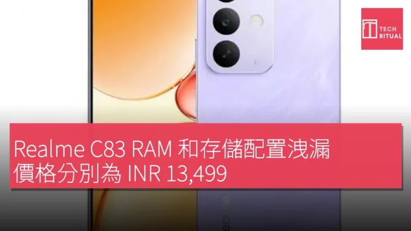 Realme C83 RAM 和存儲配置洩漏,價格分別為 INR 13,499、INR 14,499 和 INR 17,499