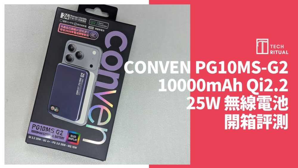 【開箱評價】CONVEN PG10MS-G2 10000mAh QI 2.2 25W 無線電池