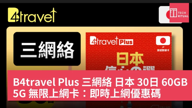 B4travel Plus 三網絡 日本 30日 60GB 5G 無限上網卡:即時上網優惠碼