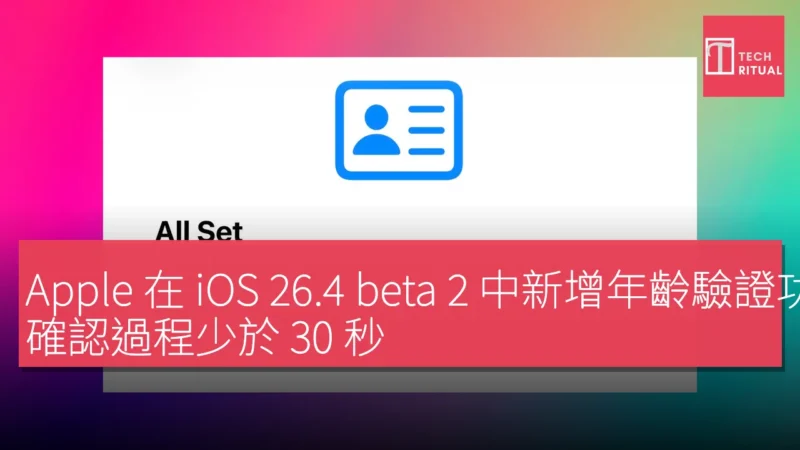 Apple 在 iOS 26.4 beta 2 中新增年齡驗證功能,確認過程少於 30 秒