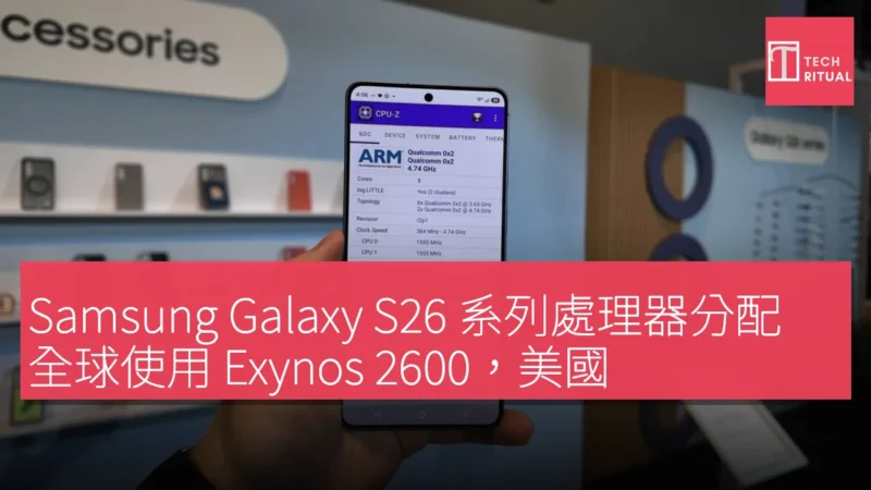 Galaxy S26 和 Galaxy S26+ 在大多數地區都由 Exynos 2600 提供動力。然而,美國、中國和日本的用戶則將獲得 Snapdragon 8 Elite Gen 5。Samsung 在發佈時確認了這種區域性分配。